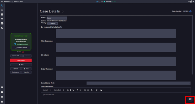 When AI transcription begins, an icon with a red dot will appear in the bottom-right corner of the softphone to indicate the conversation is being transcribed.