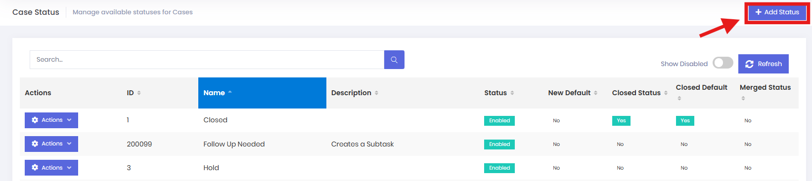 To create a new status, navigate to the top-right corner of the page and select Add Status.