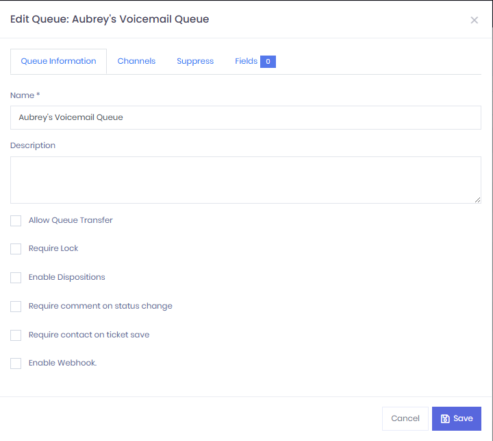 This will open a pop-up window on top of the Queues page that works as the Queue Admin panel. From here, users with the right permissions can manage the queue’s settings and control which actions are available.